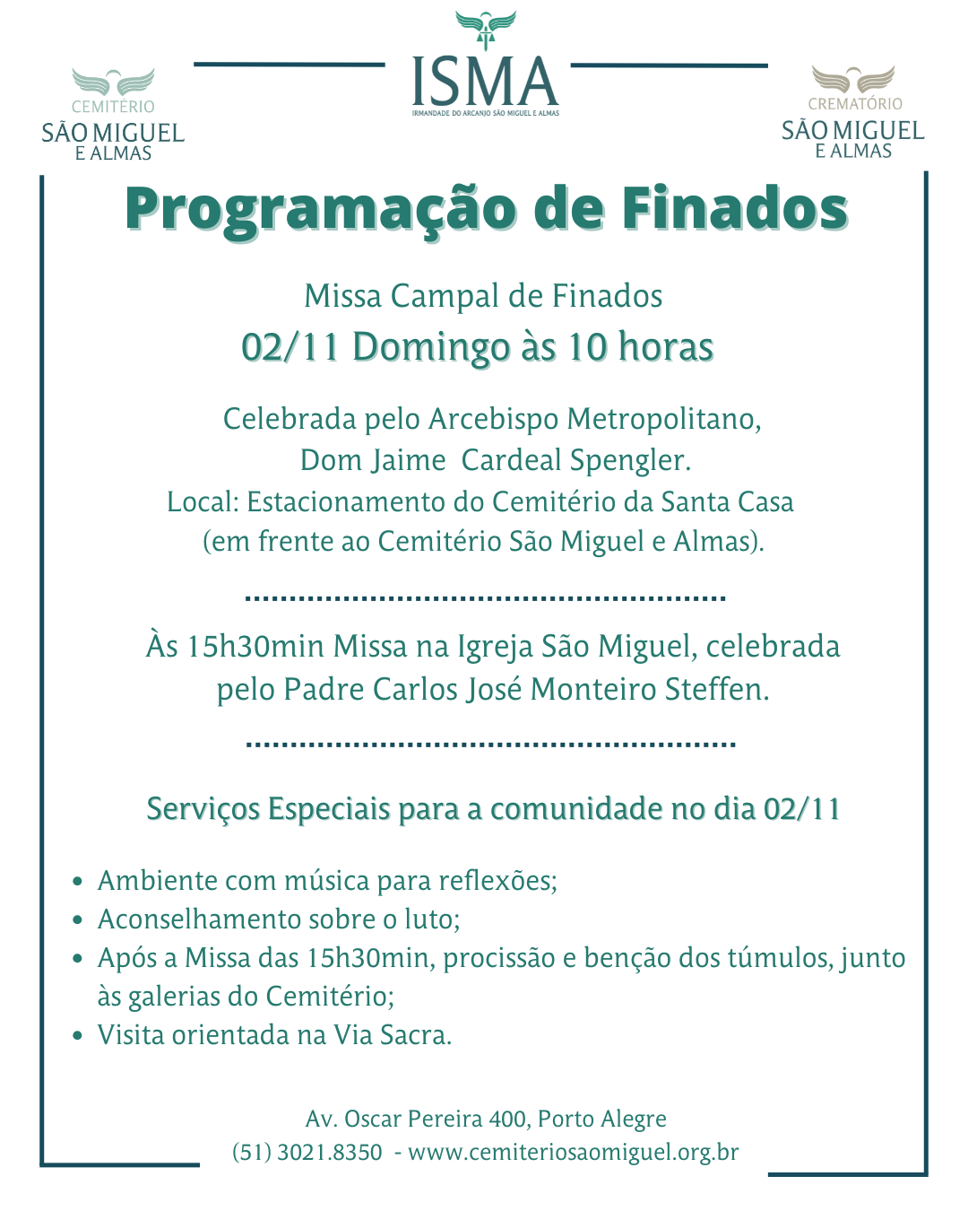 Notícias/Palavra do provedor/Programação de Finados